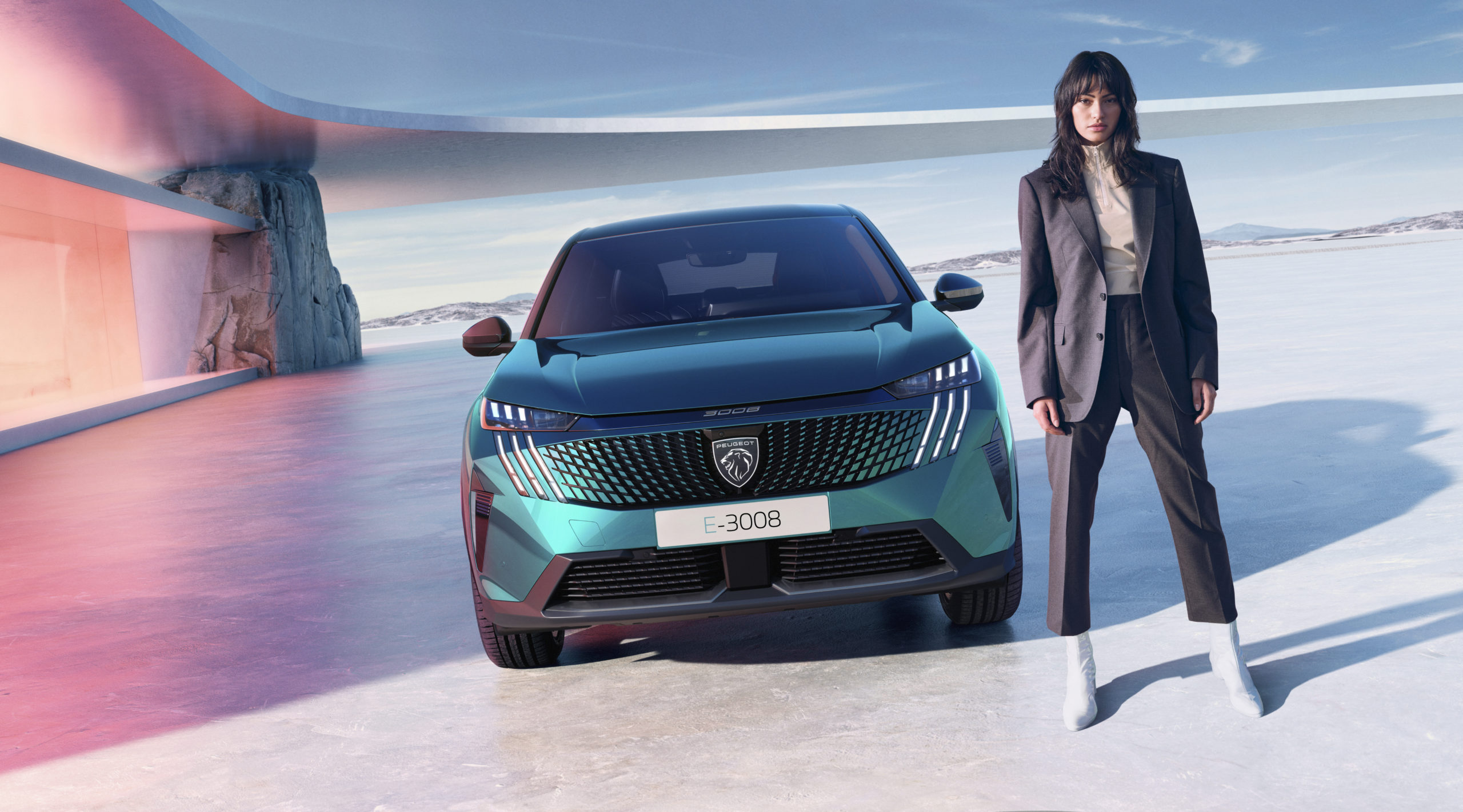 Den nye Peugeot E-3008 er designet og produceret i Frankrig på fabrikken Sochaux. Det franske minimalistiske design med unikke detaljer som den helt nye High-Tech front med de ekstreme smalle PIXEL LED-forlygter, en bagende med et stilfuldt design og en svævende hækspoiler, demonstrerer Peugeot sin nye stilart.